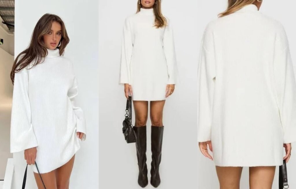 It’s a dress made from sweater-like materials—usually wool, cotton, or blends—designed to provide both comfort and effortless style. Whether fitted or oversized, it brings cozy elegance to any outfit.