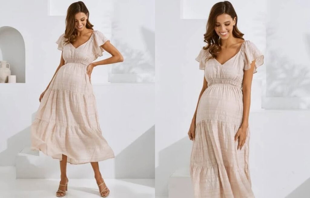 The maternity dress is specially designed to support a woman’s body throughout pregnancy, adapting to her changing shape without sacrificing style.