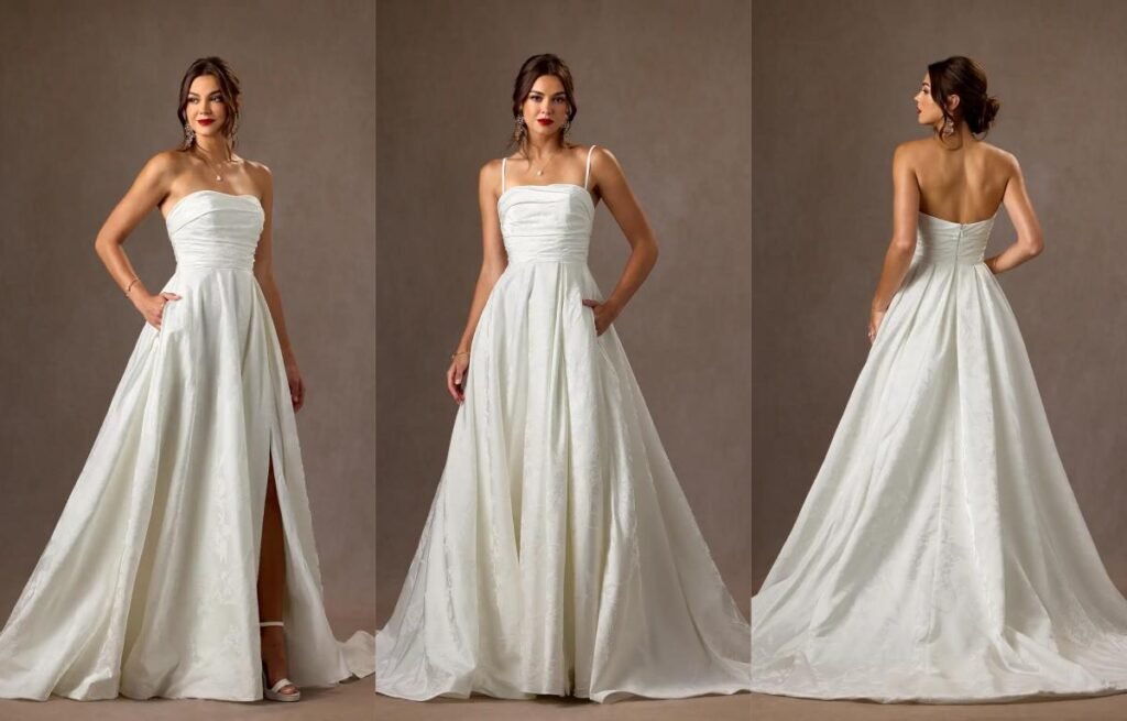 - Necklines: Strapless, V-neck, sweetheart, halter—all work well with the A-line base