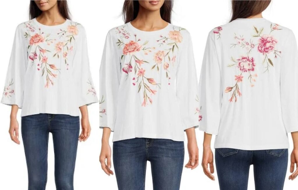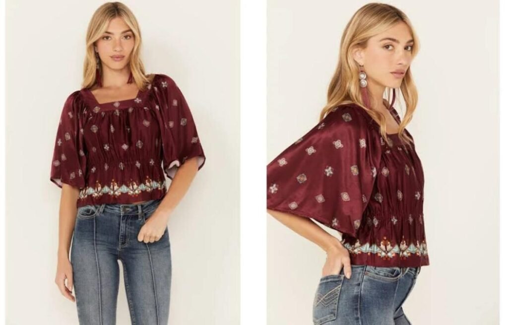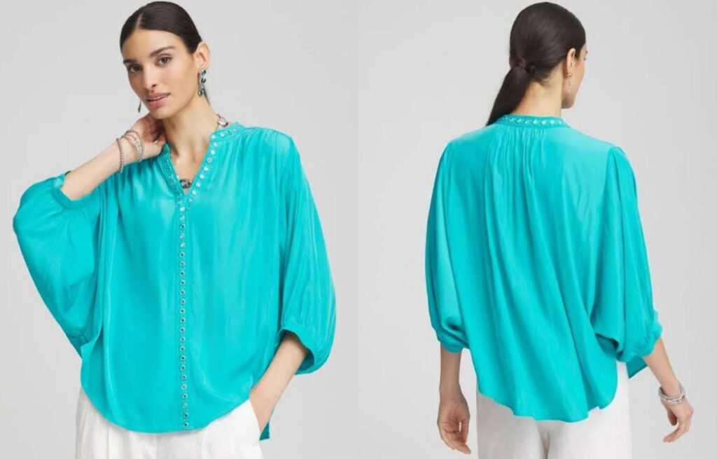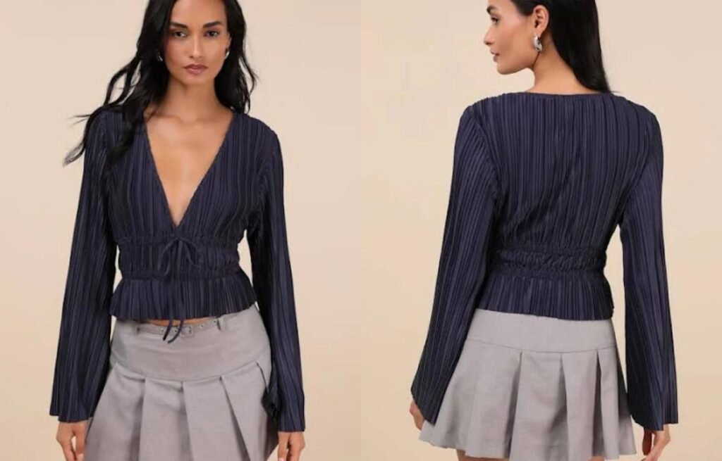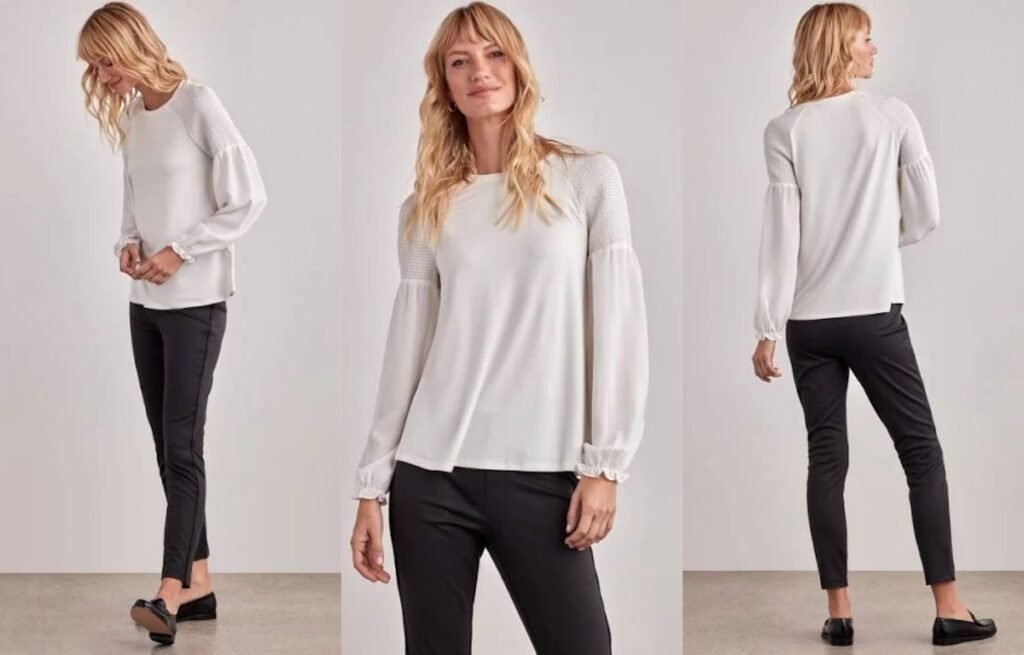 Soft, medium-weight fabrics like rayon, crepe, silk blends, or light knits give bell sleeves structure without stiffness. These materials allow the sleeve to hang gracefully while still holding the bell shape.