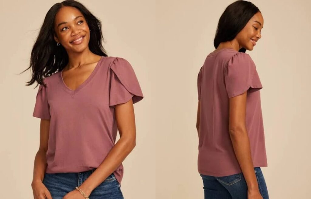 Fabrics like crepe, rayon, silk, and lightweight woven cotton allow the sleeve to drape softly without stiffness. These materials enhance the petal overlap without looking bulky.