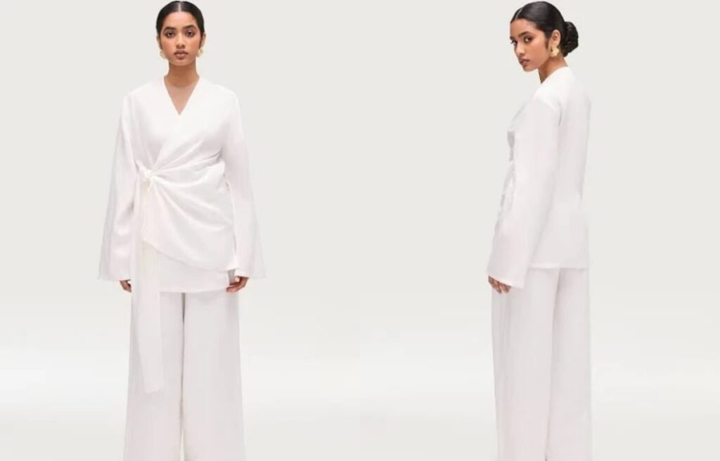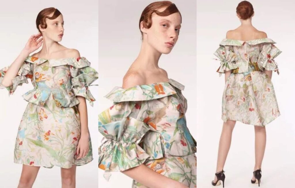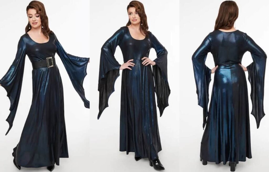 While cape and butterfly sleeves drape and move, wing sleeves stay firm and structured. They’re cut to angle outward from the shoulder or upper arm, often with no underarm seam, forming a striking wing-like silhouette.