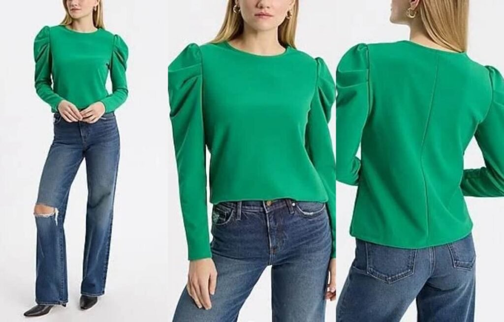 Leg of mutton sleeves, also called gigot sleeves, are characterized by their voluminous upper arm that gradually tapers to a fitted lower arm or cuff. This sleeve adds height, statement volume, and a distinct silhouette that draws attention.