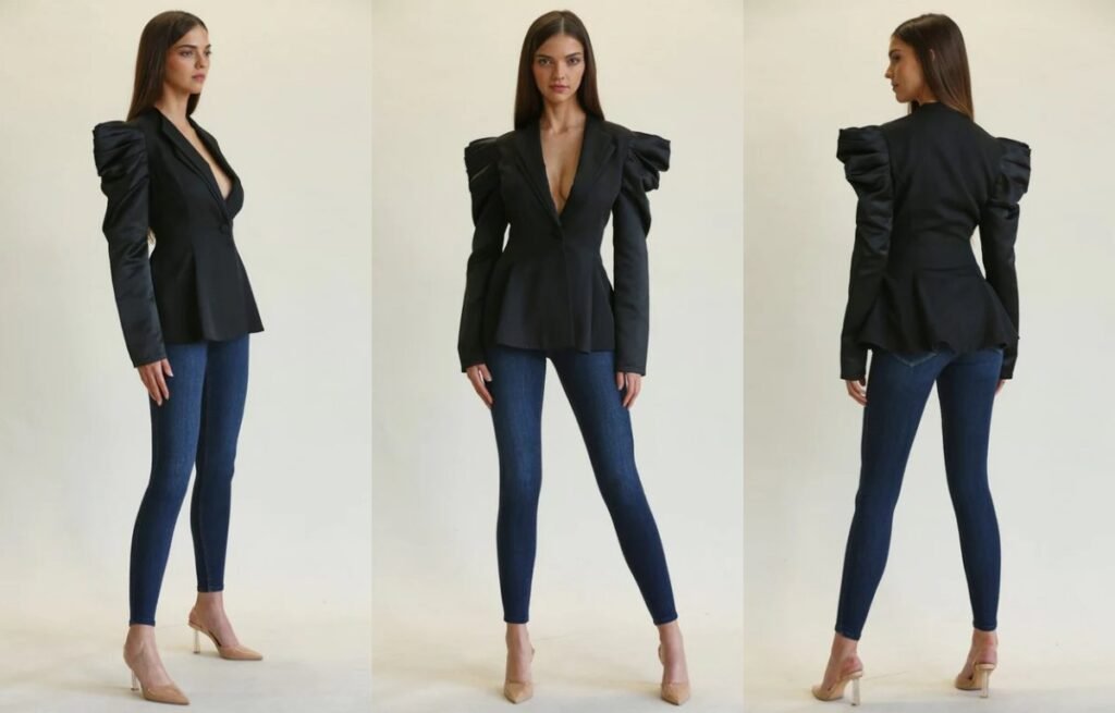 Power sleeves are built with defined shape, often using tucks, pleats, padding, or stiff fabric to maintain structure. Unlike soft puff sleeves that collapse easily, power sleeves are sculpted to stand tall and sharp, especially at the shoulder.