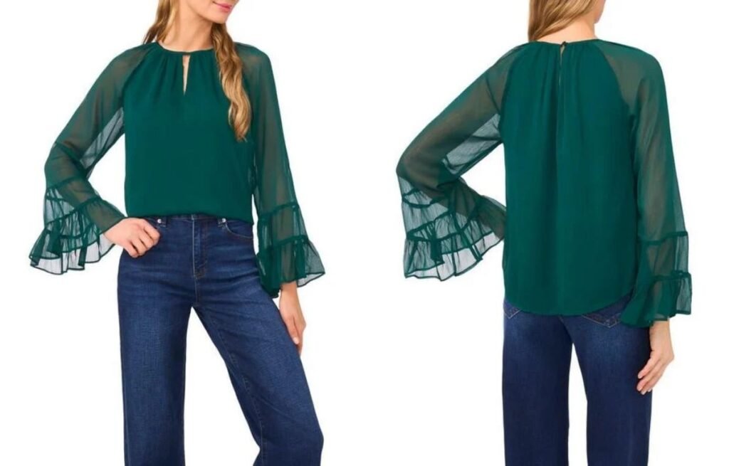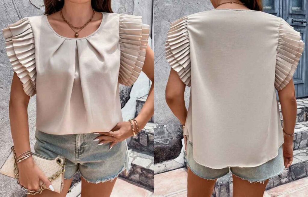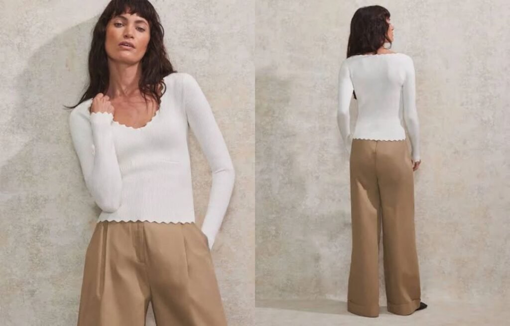 Unlike frills or lace trims that are added as separate elements, scalloped edges are usually cut and finished directly on the fabric, becoming part of the sleeve’s structure. This creates a cleaner, more intentional design.