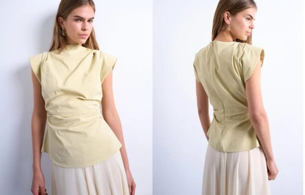 - Creating Dimension: The draping creates a dimensional effect, breaking up the plain silhouette of a top or dress. This subtle yet striking detail elevates the garment and adds an element of interest without overwhelming the design.