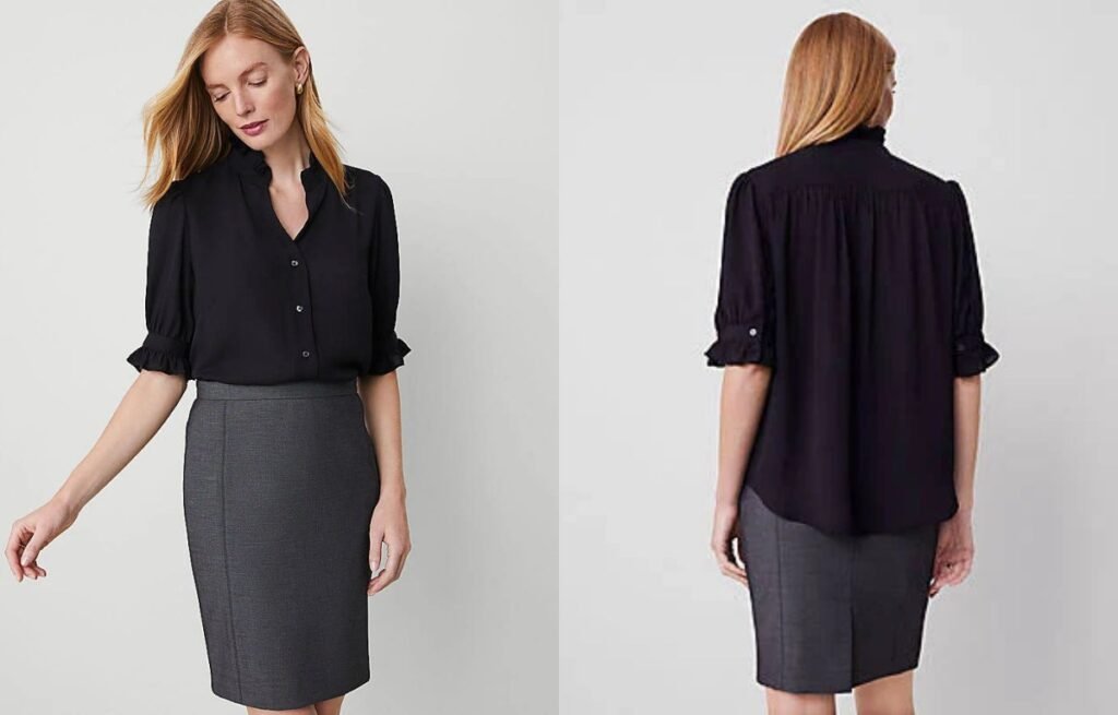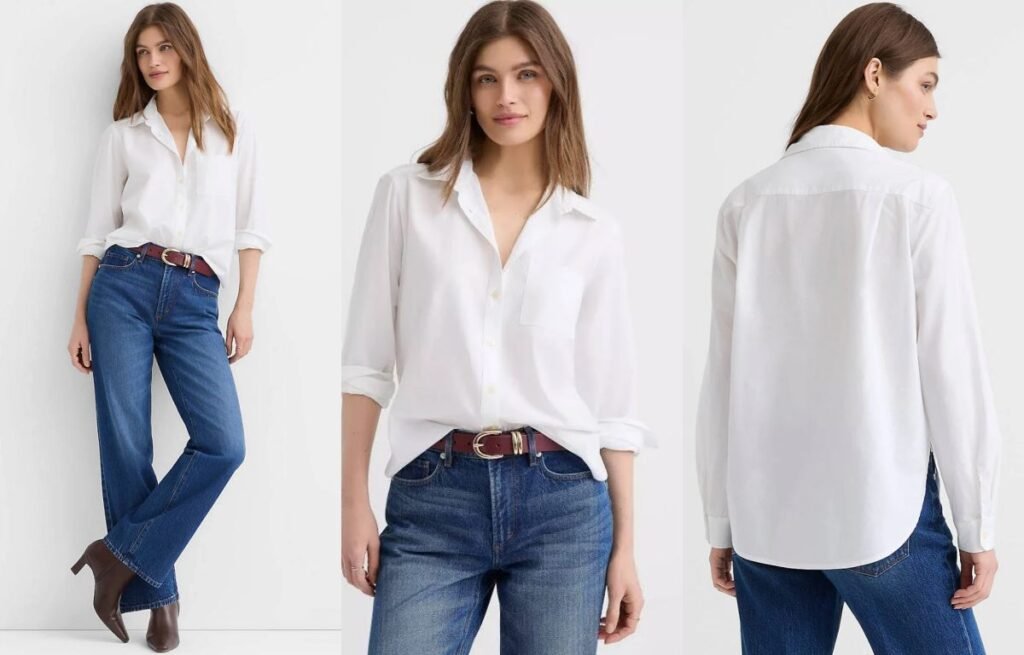 - Wovens: blouses, button-downs, satin tops, denim shirts