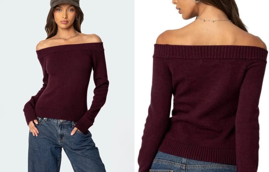 | Off-shoulder crop | rib knit, jersey | slip-down | elastic spec + seam reinforcement |